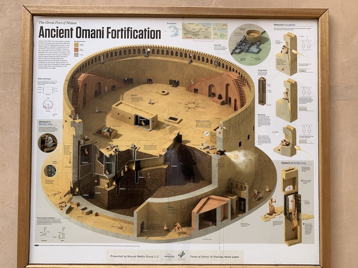 The fort’s construction incorporated innovative defensive planning such as building above an underground river to ensure access to fresh water during sieges, demonstrating foresight in long-term military resilience. Over the centuries, Nizwa Fort stood as a symbol of the city’s continued importance in Oman’s political and social history.