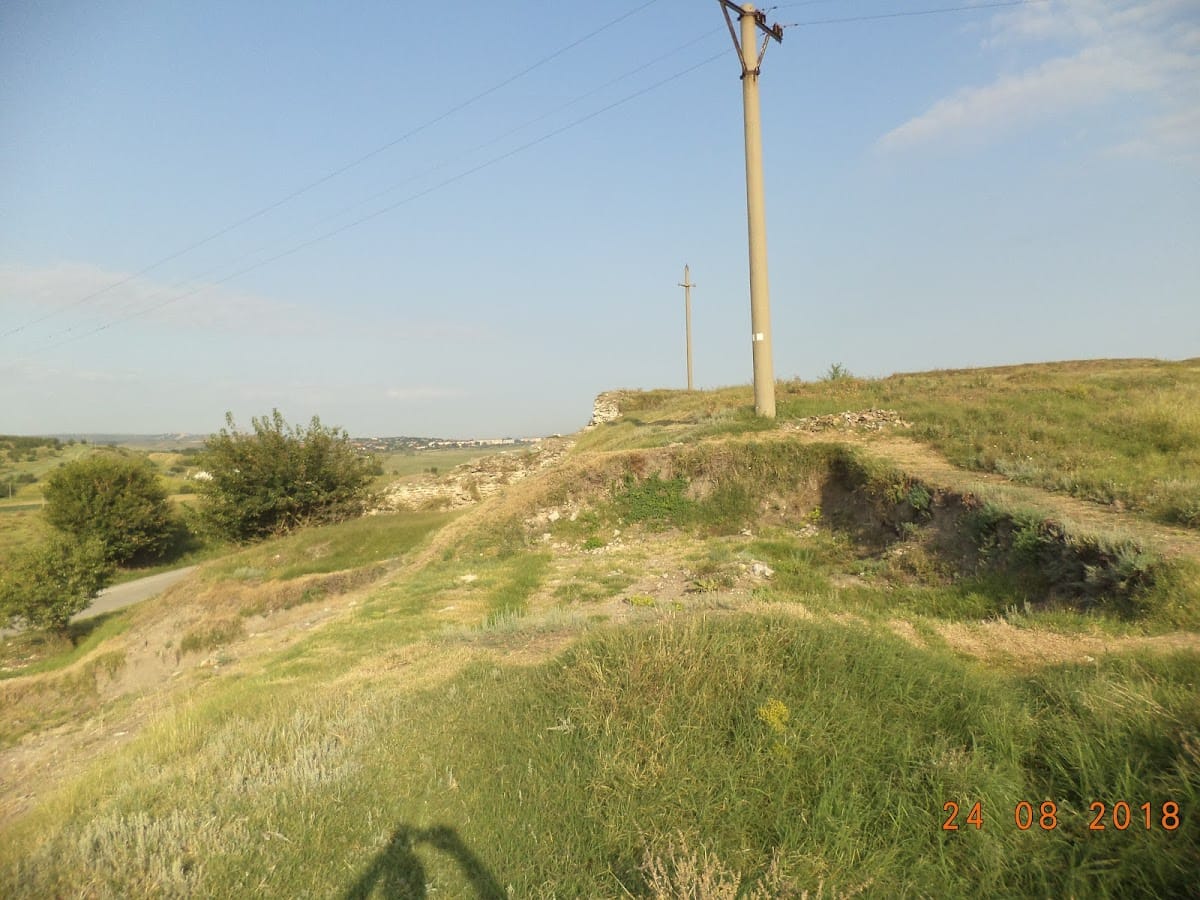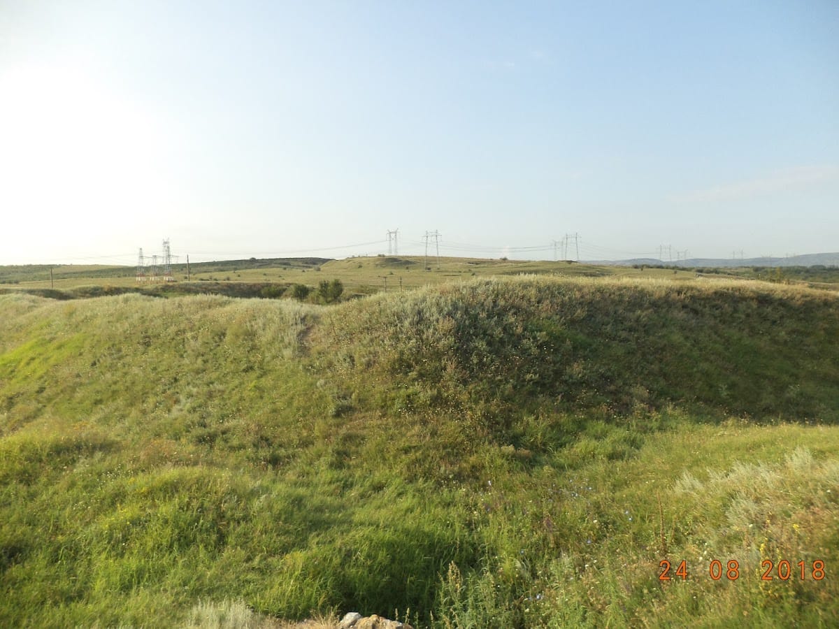 The necropolis contains numerous tumuli, or burial mounds, including the notable Kurgan-Vizir mound. This mound has a circumference of 400 meters, rises 73 meters high, and features steep slopes between 75 and 90 degrees. It aligns with ancient radial roads that connected the fortress to the surrounding hinterland.