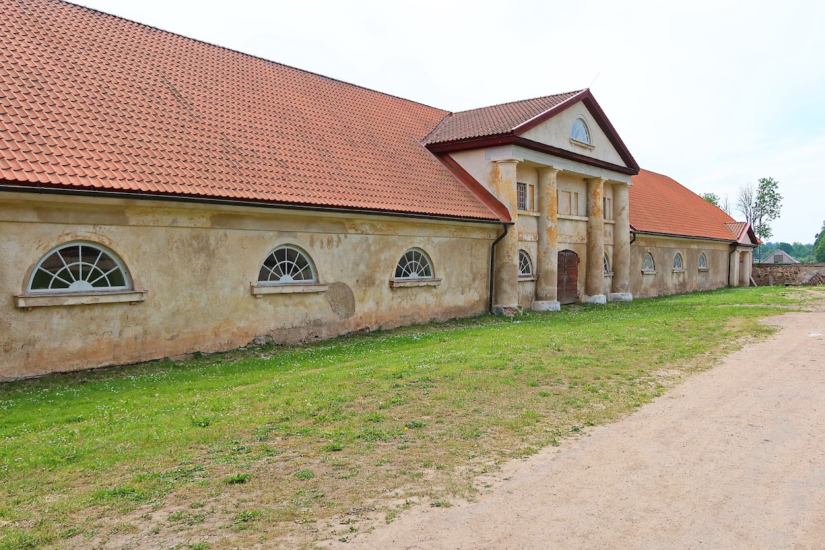 The estate extends beyond the main manor, incorporating nearly thirty auxiliary buildings dating from the 18th and 19th centuries. Among these are residential quarters for servants, barns, stables differentiated for parade and work horses, a smithy, facilities for livestock such as sheepfolds and cowsheds, as well as a gardener’s house. The grounds also contain a tavern, greenhouse, orangery, and two ponds connected by stone bridges, together forming a self-contained agricultural and social unit.