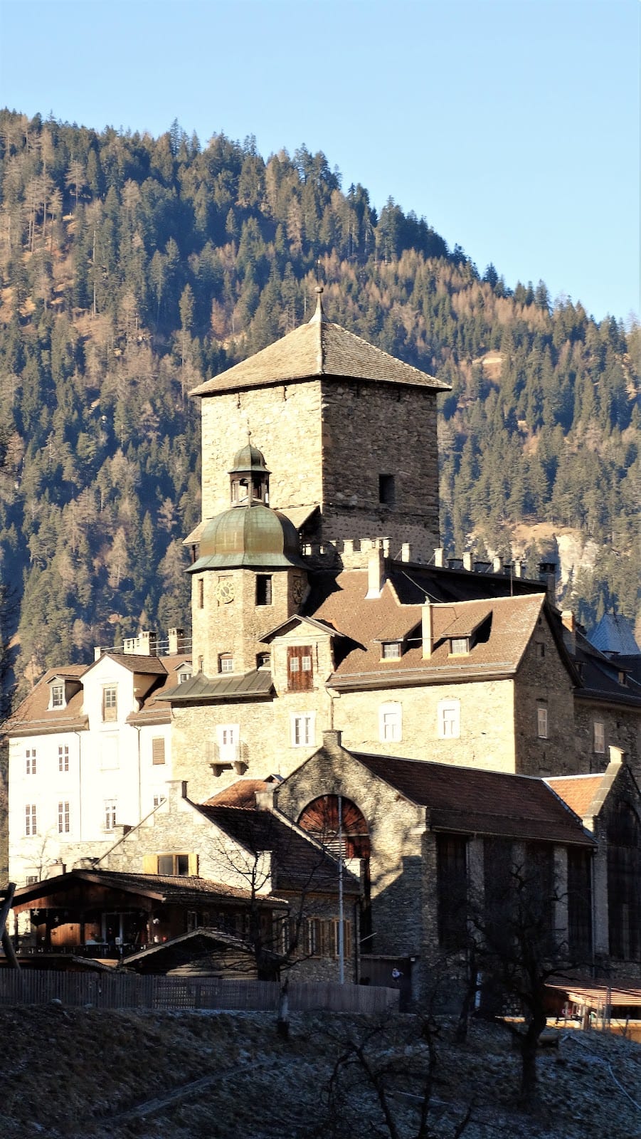 Ortenstein Castle stands in Tumegl/Tomils, Switzerland, and was erected in the medieval period by authorities of the Bishopric of Chur or by their local agents, the Lords of Vaz.
