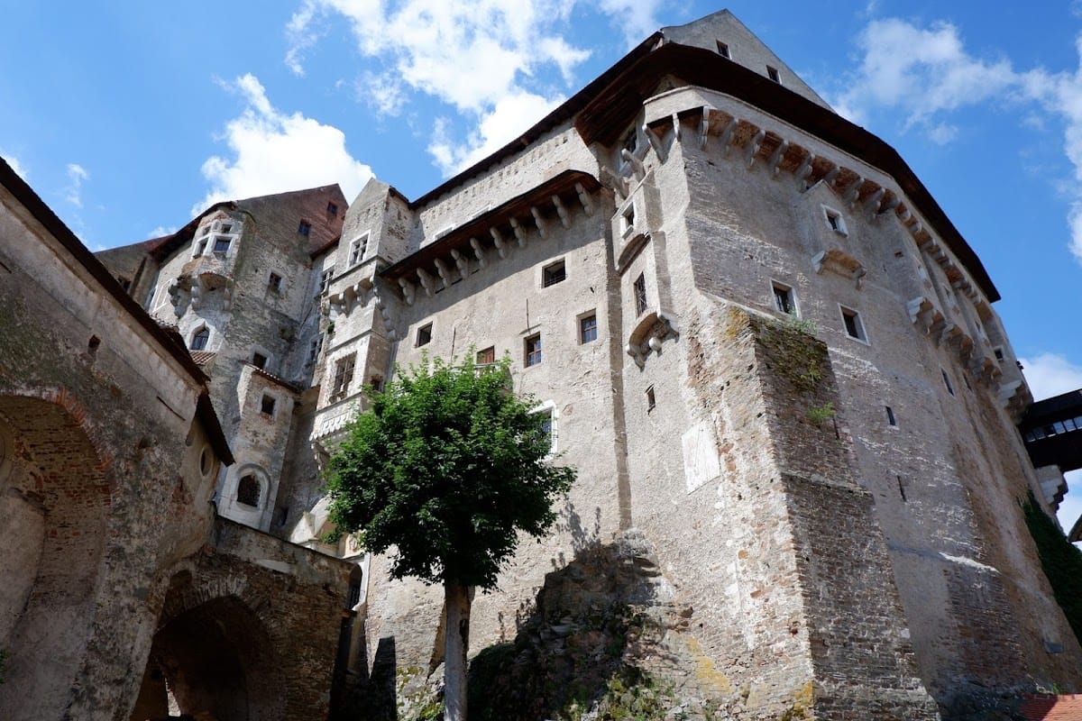 Inside, the castle still retains many historic decorative elements. The Knights’ Hall boasts Renaissance vaulting with diamond-shaped ribs and stucco reliefs dating from around 1700. Rococo paintings adorn rooms such as the bedroom and the Chinese parlour, painted in the 1760s. The Baroque-era chapel contains frescoes completed in 1716 by the artist František Řehoř Ignác Eckstein. Other notable chambers include a picture gallery on the first floor and a Renaissance palace attached to the original core, linked by a vaulted passage called the Black Gate.