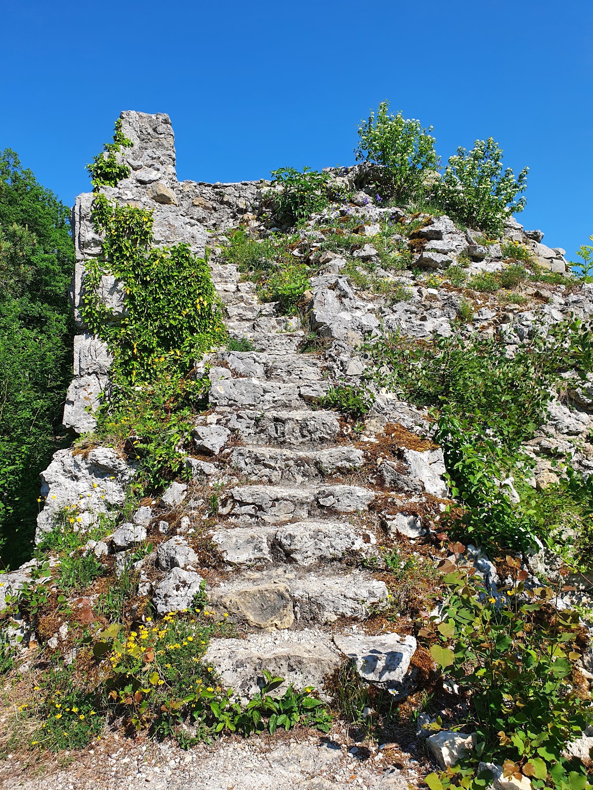 The ruins of Radegg are situated on a rocky spur above the Wangental valley in the municipality of Wilchingen, Switzerland. Constructed by medieval settlers around the year 1200, this stone castle was associated with the baronial family von Radegg.