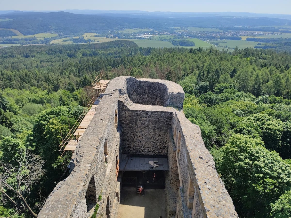 Throughout the 18th century, the ruins belonged to the noble Černín family, who chose not to restore the site. However, in 1823 the castle underwent a Romantic-style renovation. This restoration included refurbishing the square tower into a lookout point designed for enjoyment and display, complete with a furnished room featuring a fireplace, stained glass windows, and a large iron chandelier, reflecting 19th-century tastes.