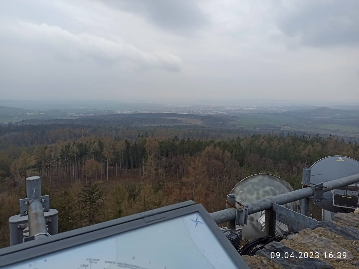 Radyně Castle occupies the summit of a sandstone hill rising to 567 meters above sea level. Its layout centers on a rectangular palace stretching roughly 49 meters in length and 11 meters in width, with internal spaces measuring nearly 27 meters long. The palace walls are notably thick, about 2.6 meters, reflecting the fortress’s defensive purpose.