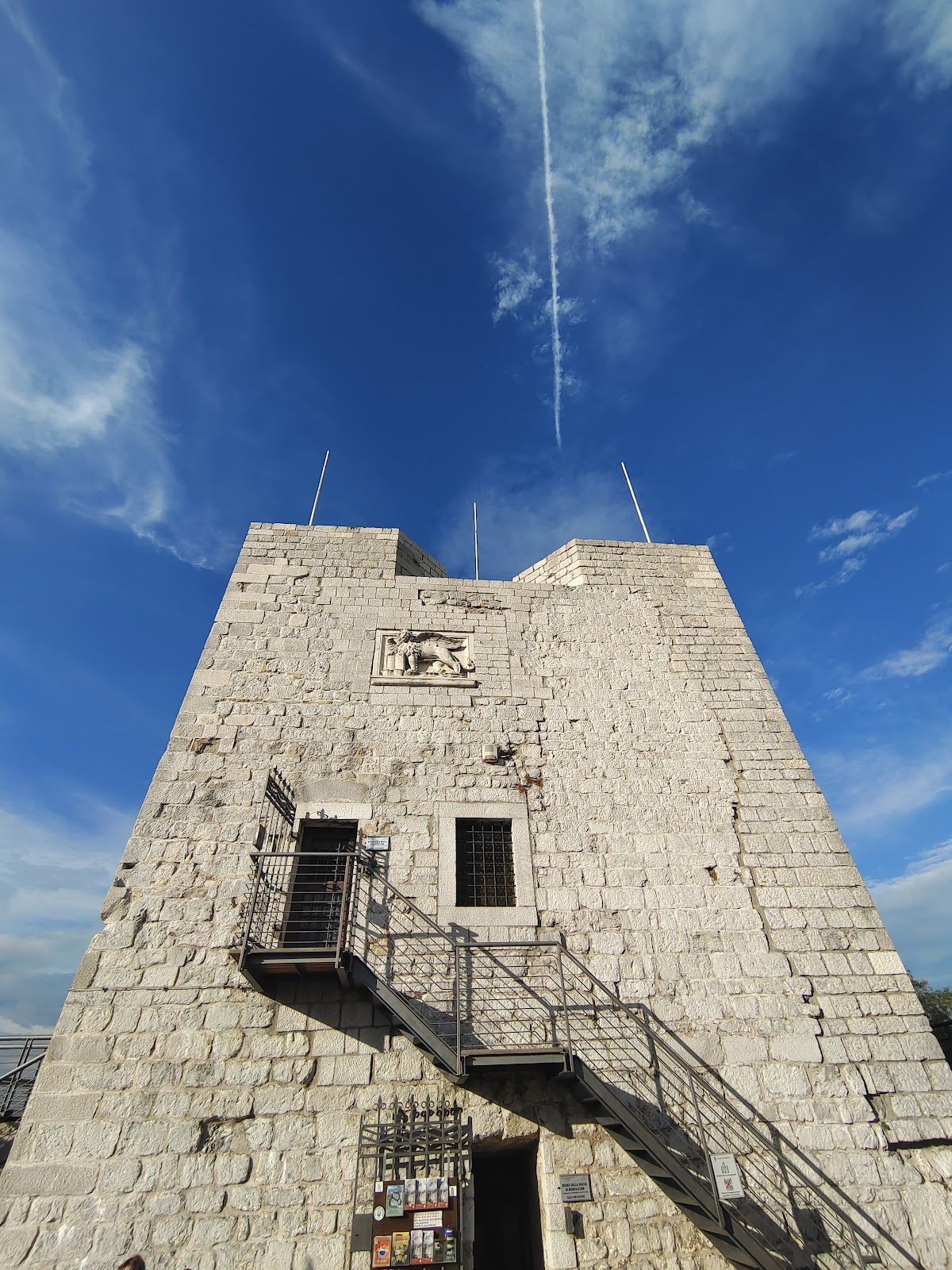 At the heart of the fortress stands a central tower, rebuilt in the early 16th century with a square base designed specifically for storing gunpowder. This tower was constructed entirely of stone from its foundations upwards and forms a significant feature of the renewed fortress architecture adapted for the introduction of firearms. Above the entrance of this tower is a carved stone plaque dating from 1525, marking the restoration of Venetian control after the fortress’s recapture from hostile forces.