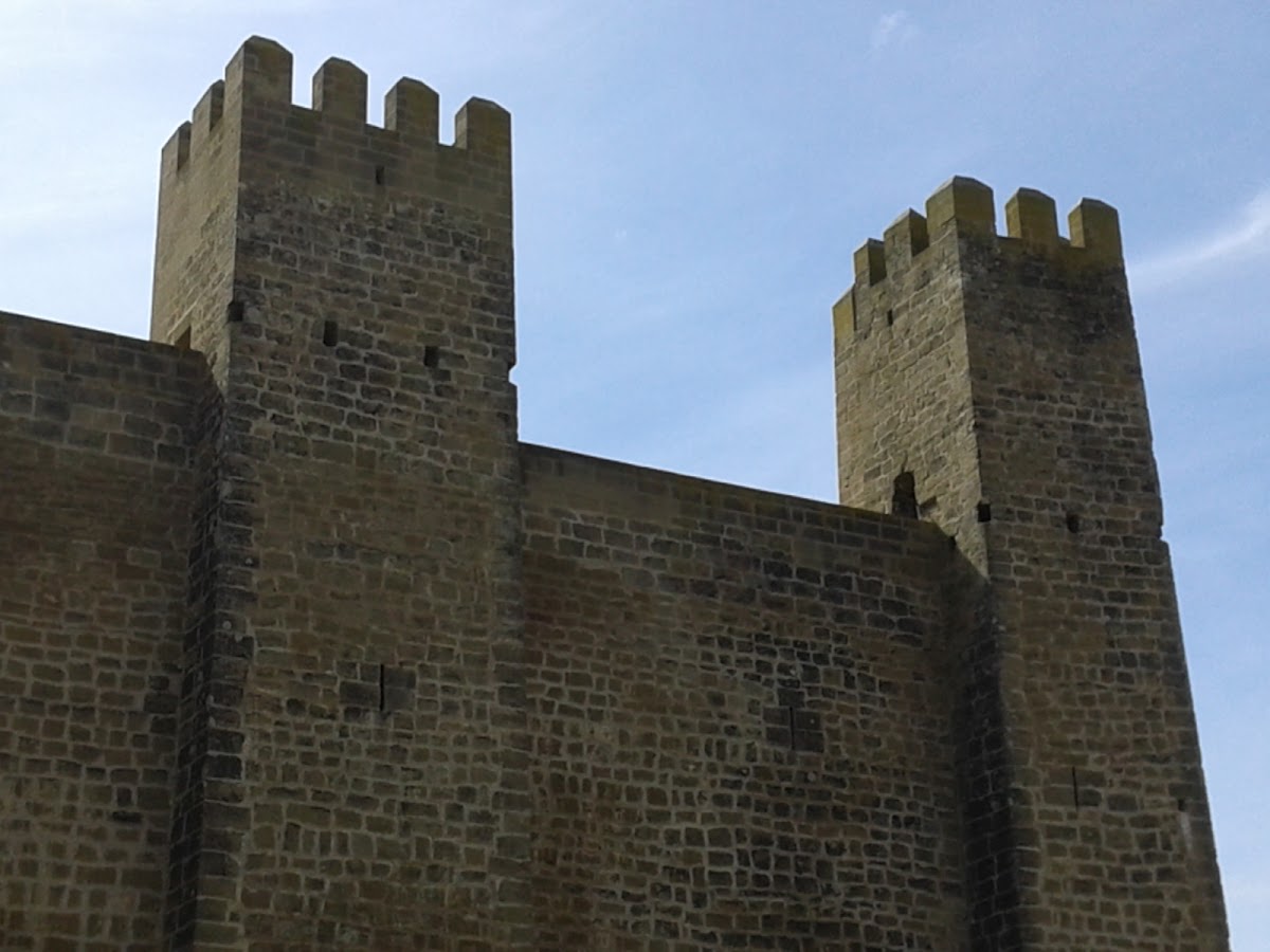 Sádaba Castle stands as an example of early 13th-century military architecture, featuring a protogothic design commonly known as the “Felipe Augusto” style. The fortress is enclosed by a rectangular stone wall measuring around 38 by 30 meters, resulting in an area of over 1000 square meters. The enclosure is built from finely dressed ashlar stone arranged in horizontal layers, demonstrating skilled masonry. The walls are uniformly tall and thick, designed to provide substantial defense while notably lacking a central keep tower or moat. Instead, the castle’s protection relies on its complete perimeter enclosure with towers.
