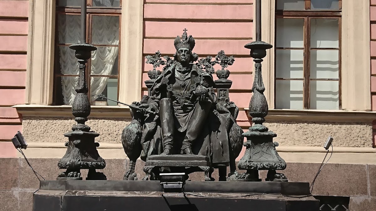 Beyond the palace itself, the complex originally encompassed several structural elements. These included the Resurrection Canal, although only partially restored today, the Three-Part Bridge leading to the main entrance, the Hornwork fortification featuring a monument to Peter the Great (now situated at Peter the Great Square), a street called Maple Street, and two guard pavilions. Among the monuments on the site are an 1800 statue of Peter I adorned with bronze bas-reliefs depicting the battles of Poltava and Gangut, and a 2003 monument honoring Paul I by sculptor V. Gorevoy, both standing prominently within and near the courtyard.