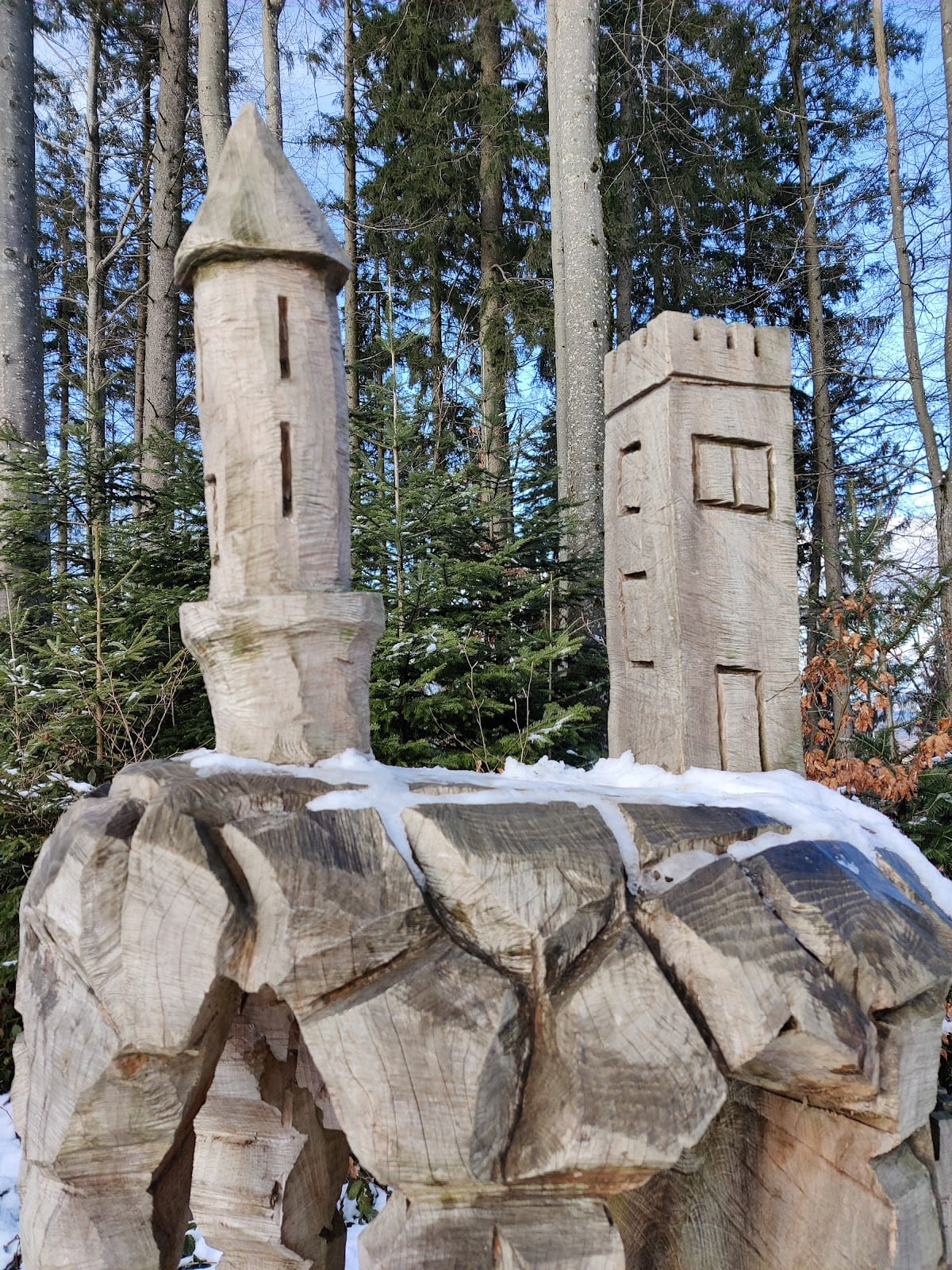 Around the middle of the 13th century, the wooden castle was replaced by a large stone residential tower. This keep formed the central defensive and living structure of the castle. To enhance protection, a neck ditch was dug through the rock of the hilltop, narrowing access to the tower. A stone wall on the west side may have enclosed an outer courtyard or zwinger, a defensive space designed to trap attackers between walls, making the castle harder to capture.