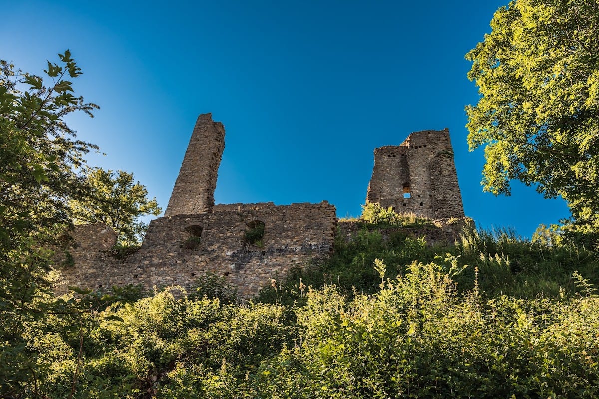 The Geissturm was constructed around 1500 and subsequently raised by an additional story. During the heightening of the eastern curtain wall in 1622 or 1623, this tower received a high entrance on its top floor that opened onto the battlement walkway atop the wall, indicating its continued military function into the early modern period. Today, the ruins preserve these features as testimonials to the castle’s long evolution from medieval stronghold to an abandoned fortress.