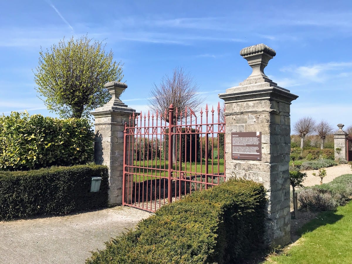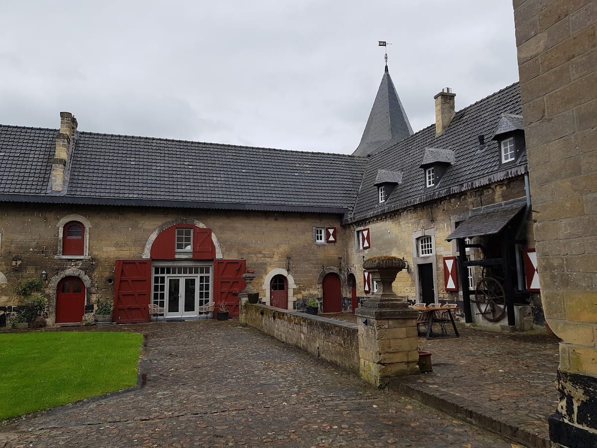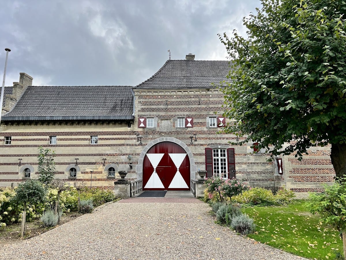 A decorative console frieze runs beneath the eaves of the main residence, reflecting the stylistic details of the period. The farm buildings suffered extensive damage in a fire in 1935 but were reconstructed using the same local marlstone blocks, maintaining the traditional material palette. The northwest wing, which includes the main entrance gate, dates from the 17th or 18th century. Above this gate is a carved stone showing the alliance coat of arms from 1704, symbolizing the union of the De Chalmot du Portal and Van Volckershove families who once occupied the property.