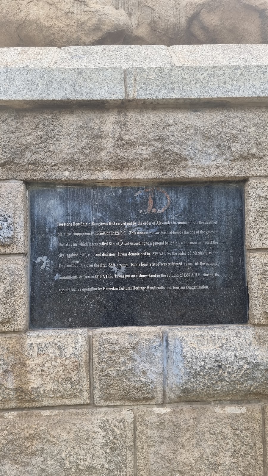 Scholarly interpretation and modern care: In 1968 the scholar Heinz Luschey published an influential study that compared this lion with a well-known Hellenistic memorial at Chaeronea and argued the sculpture belonged to the Hellenistic period, proposing it was set up on the orders of Alexander the Great to mark the death of his companion Hephaestion in 324 BC. This reading has been acknowledged by Iran’s Cultural Heritage Organization as a viable interpretation. After centuries of exposure and partial ruin, the remaining lion was lifted and stabilized in 1949, an intervention that brought the displaced monument back onto its hill and preserved it as an element of the city’s material past.