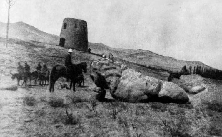 Late antique and medieval episodes: The statue’s long history includes damage associated with the Arab conquests of the seventh century, a period when many urban sites in the region experienced military and political change. In 931 AD, when forces of the Deylamid dynasty took control of the city, the gate complex was deliberately demolished. The Deylamid commander Mardāvij attempted to move one of the lion figures to the regional capital Ray; when that effort failed he ordered them broken. One of the two sculptures was reduced to rubble, while the other was only partly destroyed and came to lie on its side for centuries.