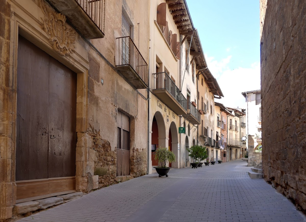 The street layout of the walled village preserves much of its medieval character, organized around three primary thoroughfares. The central street, known as “del Mig” or “del Forn,” begins just north of the church. Parallel to it runs the “Nou” or “de Pau Coll” street, connecting the Soldevila Portal in the southeast to the Portal of the Torre dels Caps in the northwest. A northern street passes by the castle area and the Vilanova (also called del Gall) square on the village’s west side. Smaller alleyways interlink these main routes, creating an intricate medieval urban fabric that has endured through the centuries.
