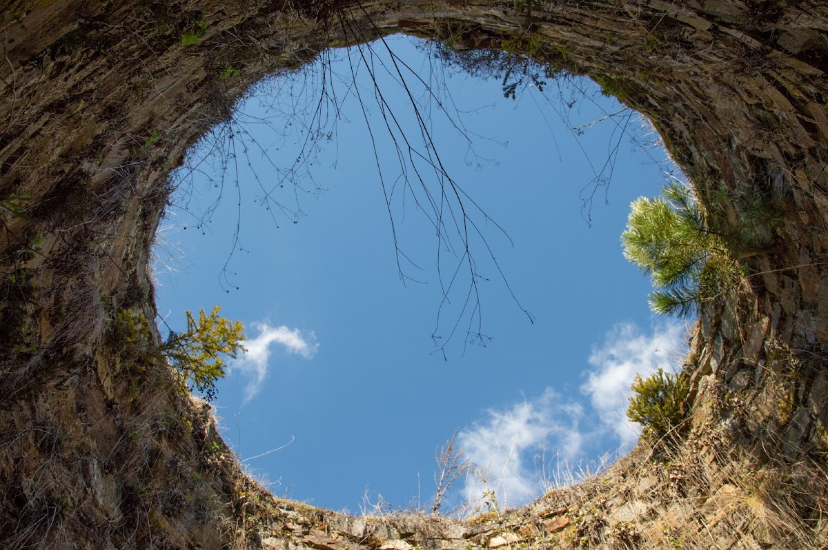 A key architectural element is the large round bergfried forming the northeastern corner of the curtain wall. Measuring roughly 9.3 meters in diameter at ground level, this tower originally had its entrance about seven meters above the surrounding terrain, making direct access difficult. Small windows illuminated the floor above the entrance, and narrower openings near the top allowed defenders to shoot arrows or crossbow bolts.