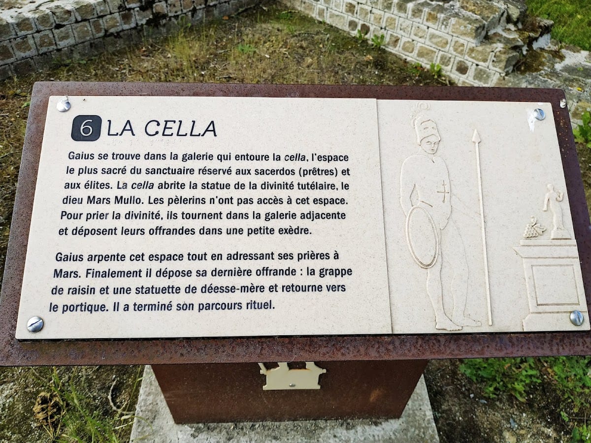 The Temple of Mars sanctuary covers nearly one hectare, measuring about 90 by 80 meters, making it one of the largest known religious complexes in ancient Gaul. The site features a courtyard enclosed on three sides by a gallery, creating a defined sacred space.