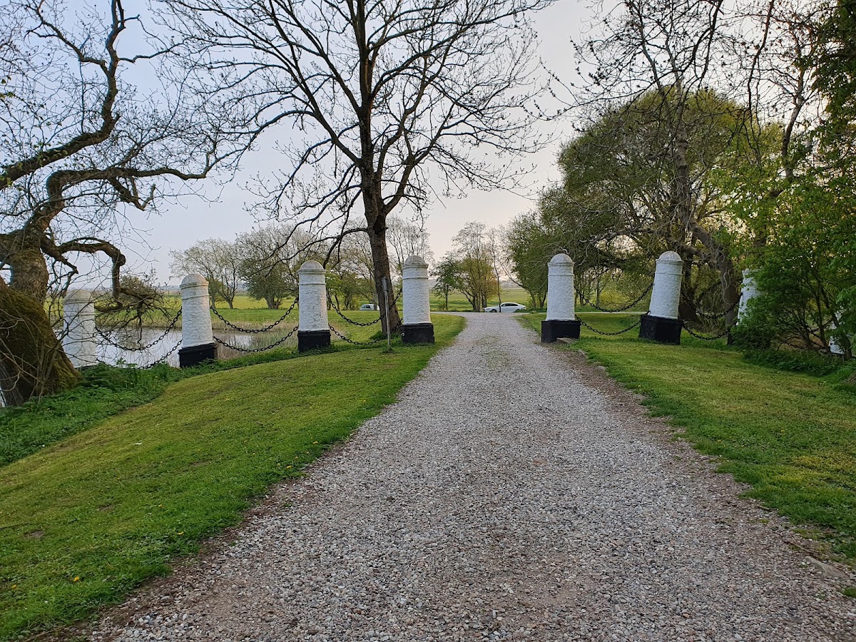 The site of Trøjborg originally consisted of a compact fortified complex built on a raised artificial mound roughly 30 by 30 meters in size. Two moats enclosed this area, including an inner moat filled with water, which enhanced its defensive character during the medieval period. The surviving moat system remains visible today, offering a glimpse into the castle’s initial layout and protective measures.