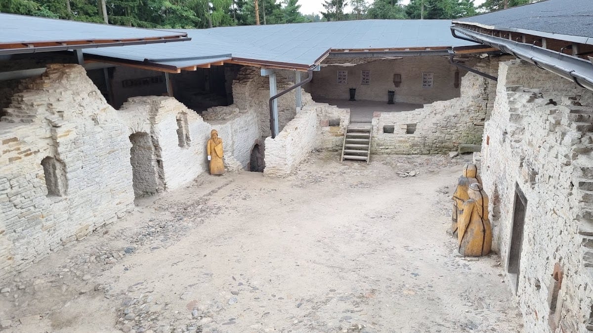 The courtyard itself covered an area estimated at 30 to 40 square meters and was encircled by the bergfried and various domestic buildings, including the hall, chapel, kitchen, and smithy, creating a compact, functional space for castle inhabitants.