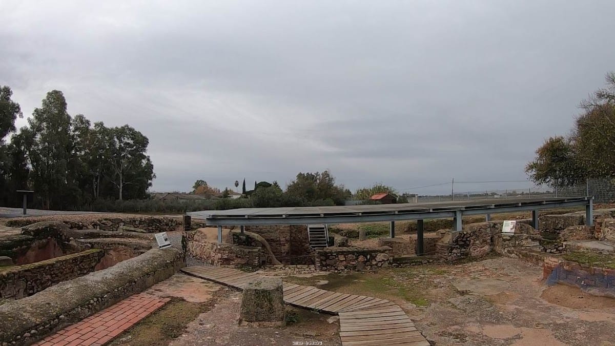 The Villa Romana Torreáguila covers nearly 30,000 square meters and lies about 189 meters above sea level, roughly 300 meters from the Guadiana River. The site is divided by the Montijo-Barbaño local road, splitting it into two main sections.