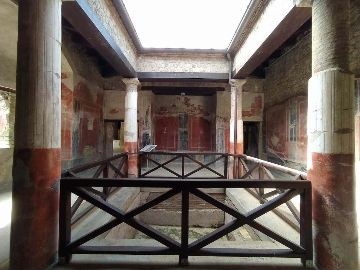 Villa San Marco encompasses approximately 11,000 square meters, making it one of the largest Roman villas in the Vesuvian area. The complex is situated on a hill, offering panoramic views of the surrounding landscape. Its architectural design follows an axial plan centered on a tetrastyle Ionic atrium, a formal reception space supported by four columns.