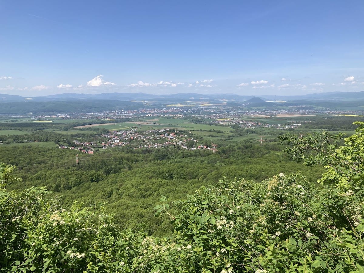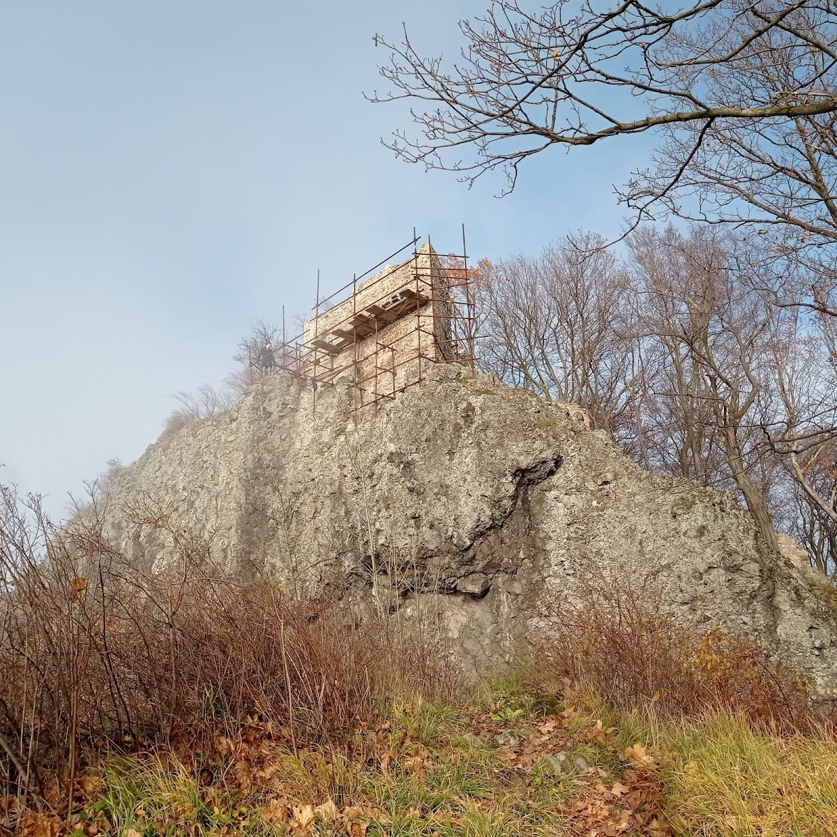 The castle ruins occupy a rocky plateau measuring roughly 45 by 35 meters, located on a hill known locally as Zámek and rising 661 meters above sea level. Three sides of this elevation—north, south, and west—are bordered by steep cliffs, providing natural defenses, while the eastern side features two natural terraces adapted for building. These terraces connect to the lower parts of the castle and allowed for controlled access.