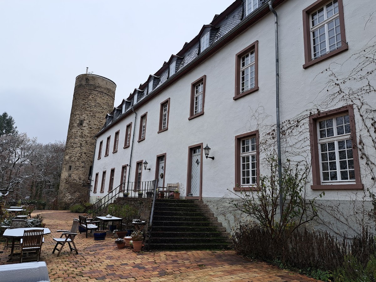 Among medieval remnants, the bergfried, or keep, stands out as the oldest surviving element. This tower served as a defensive core of the original castle and remains largely intact, preserving the medieval heritage amid later renovations. Its construction, typical for the period, would have involved thick stone walls designed for defense and observation.
